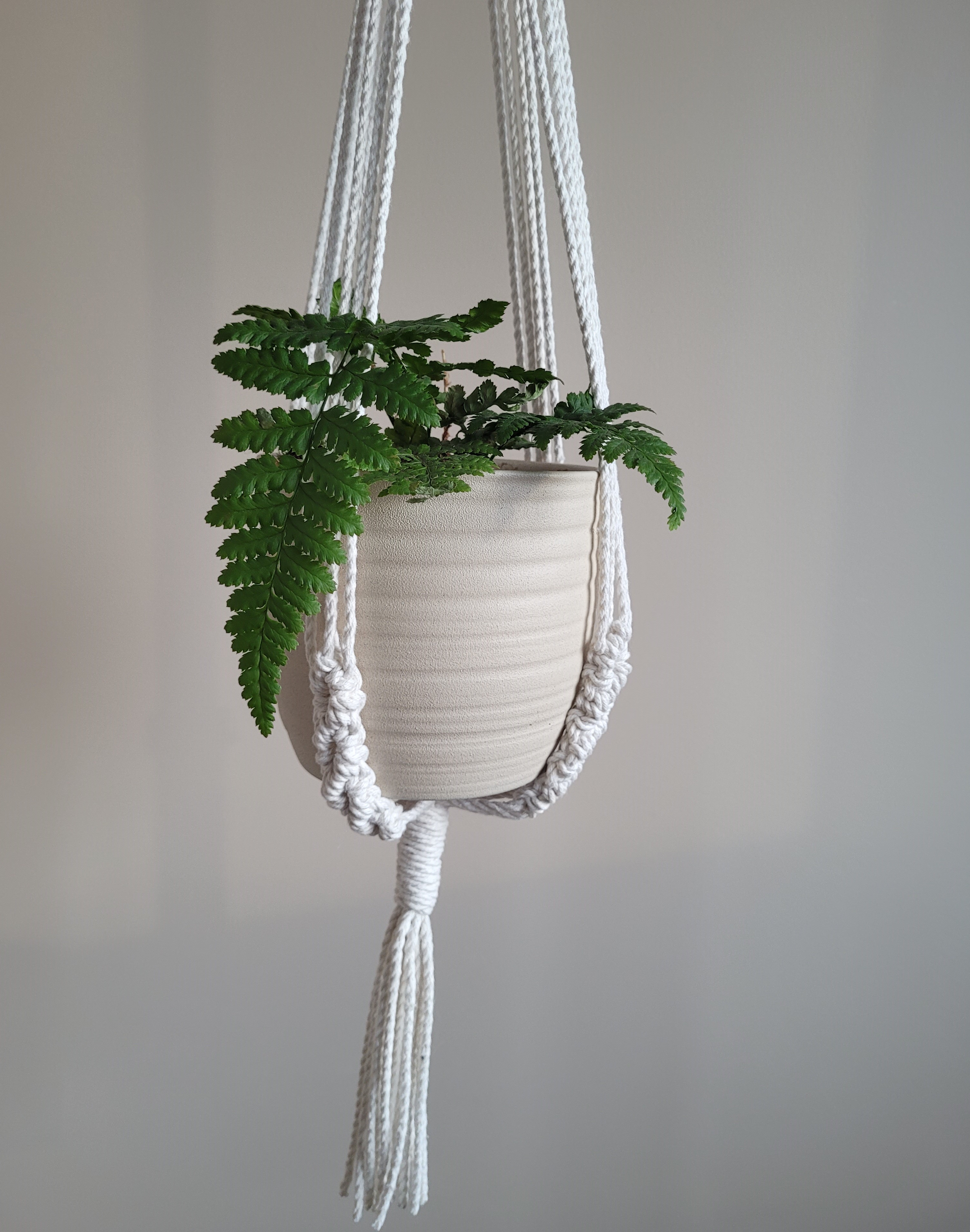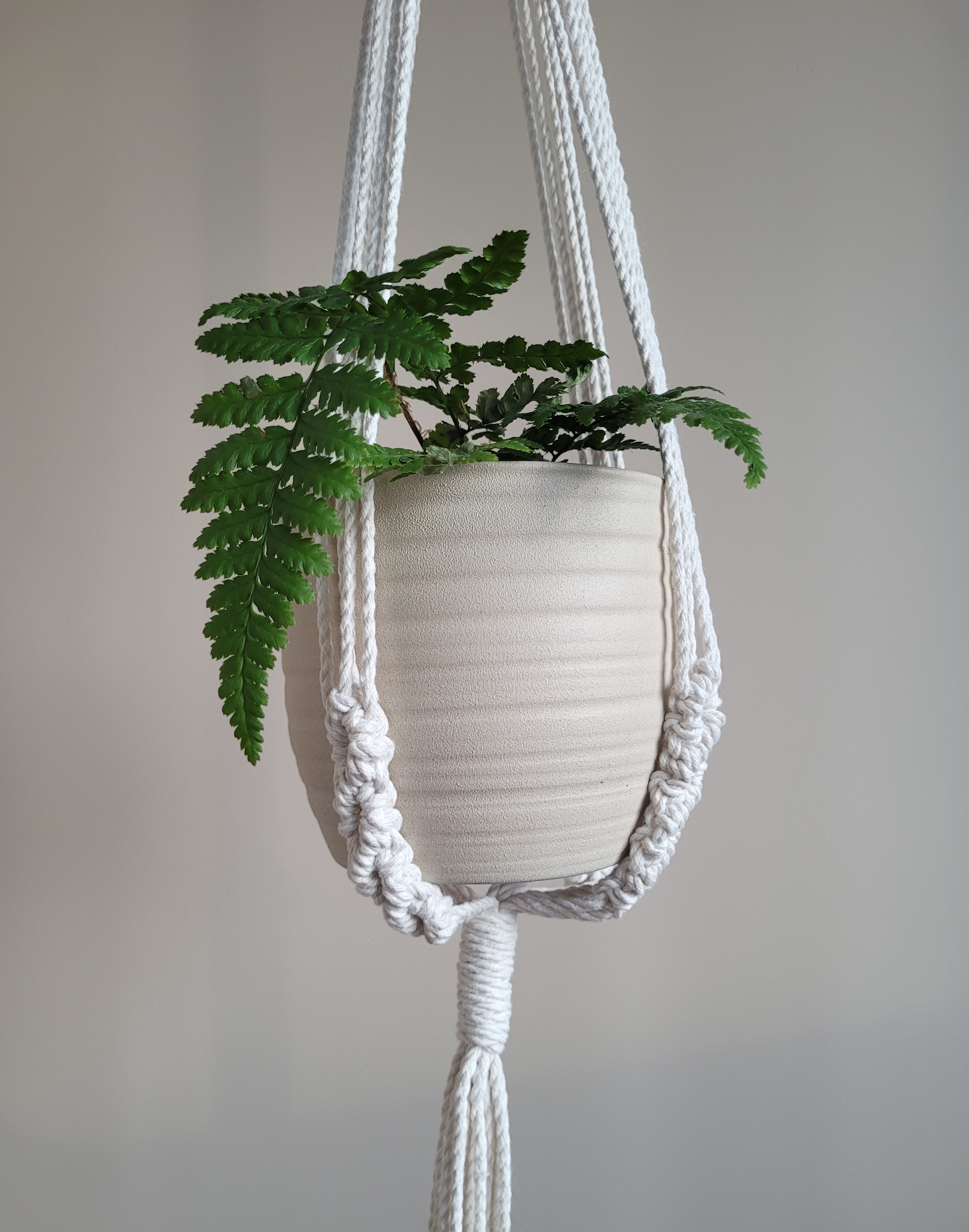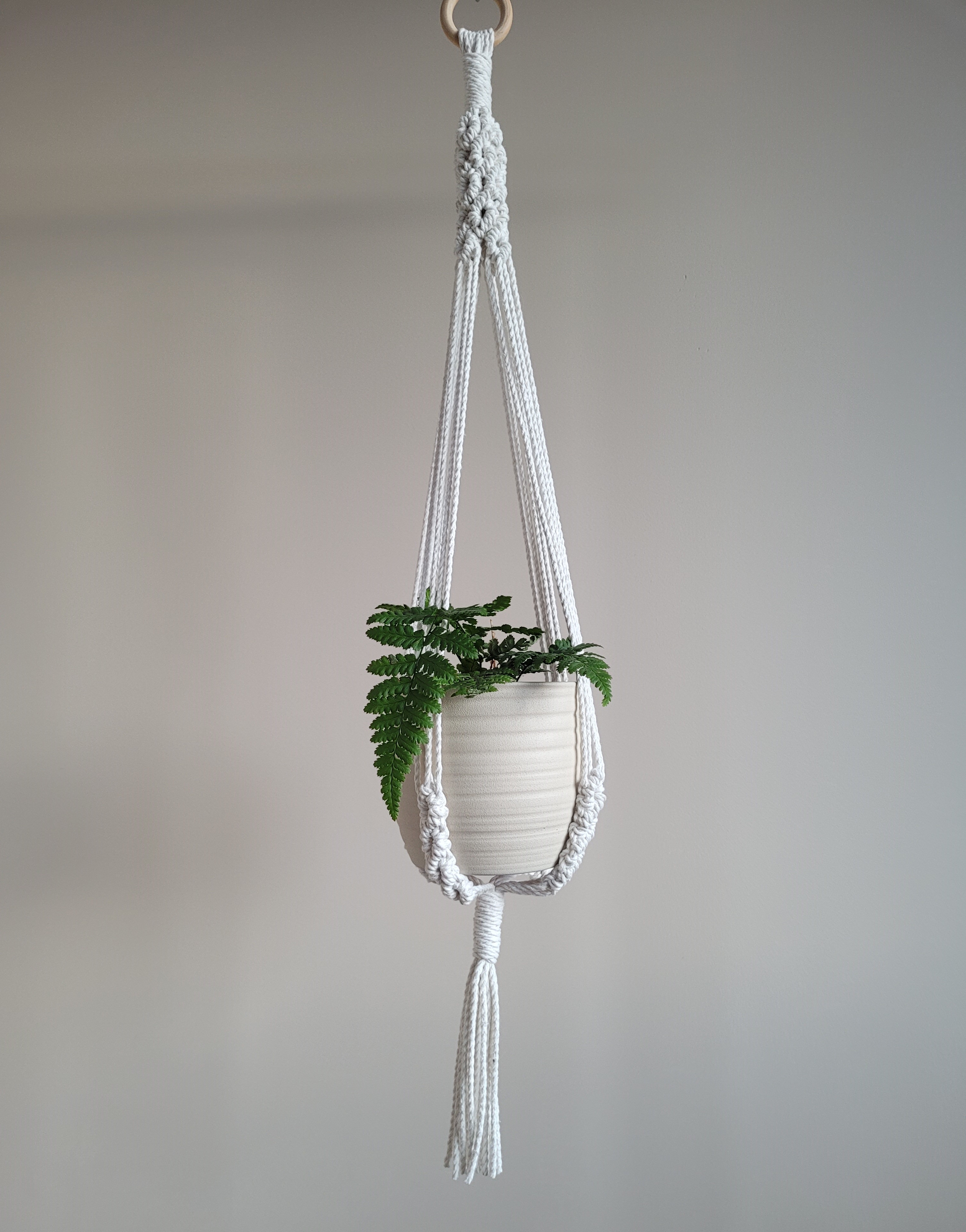 Natūralios spalvos gėlių laikiklis, pintas iš 100 proc. medvilnės siūlų.