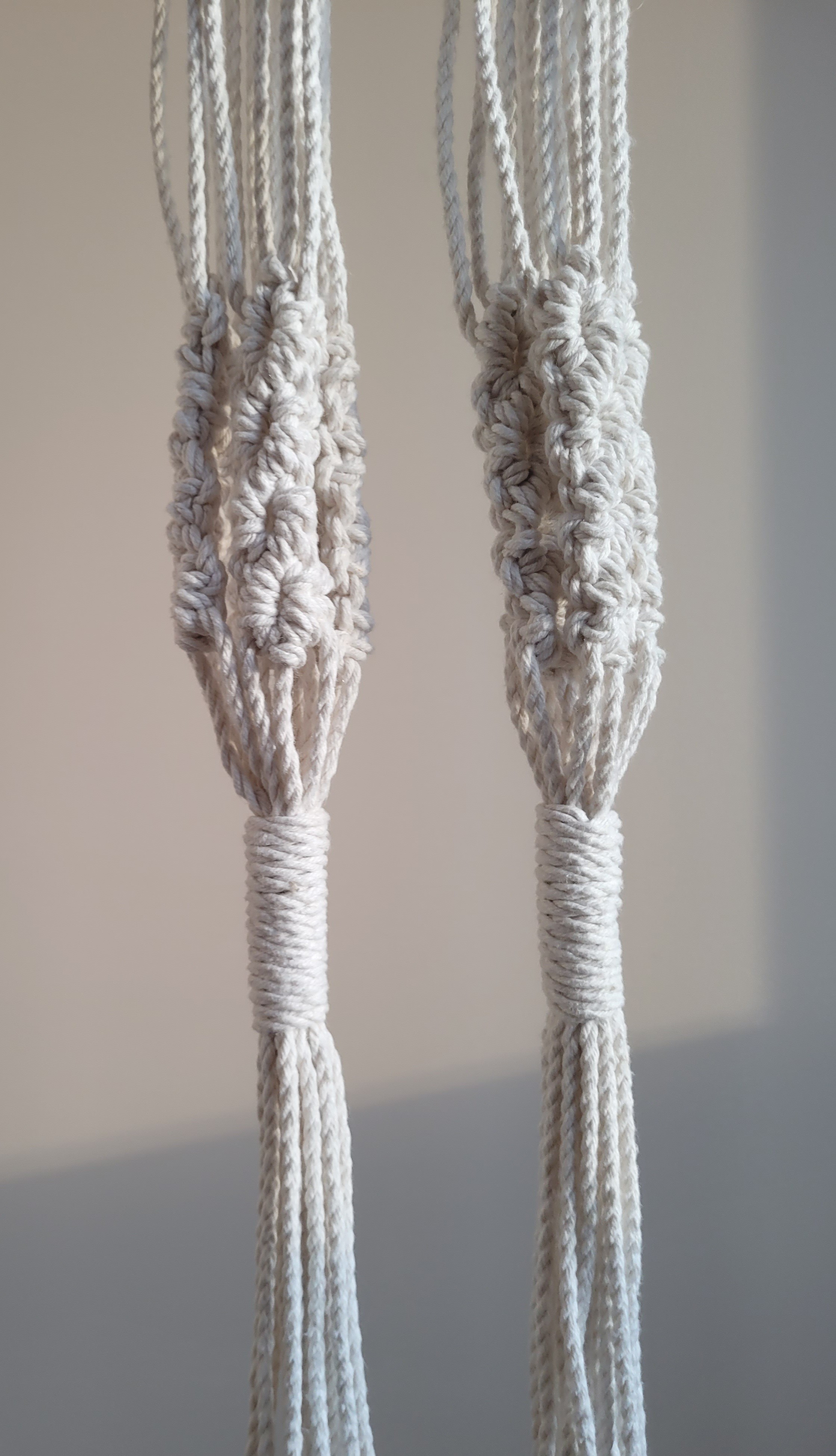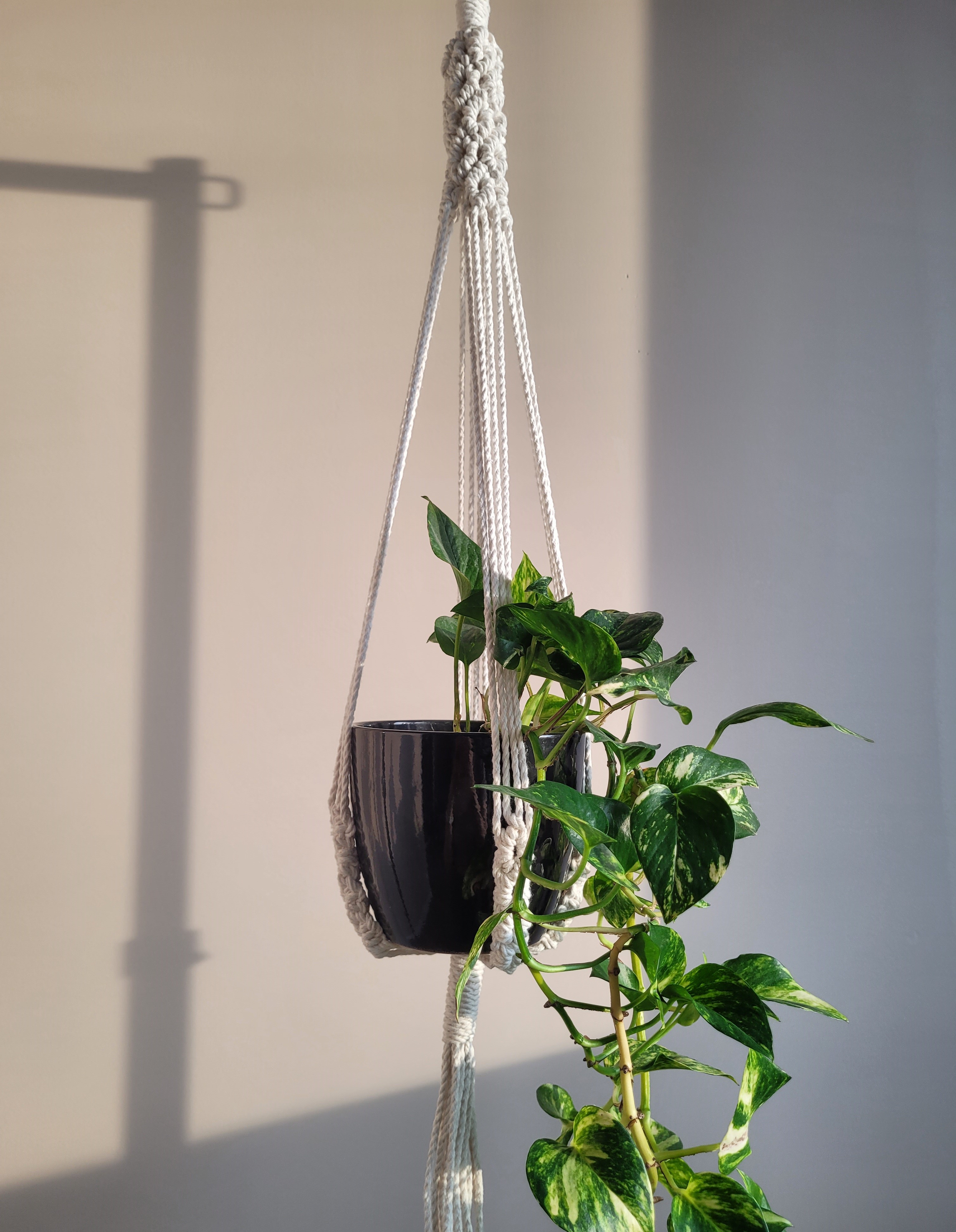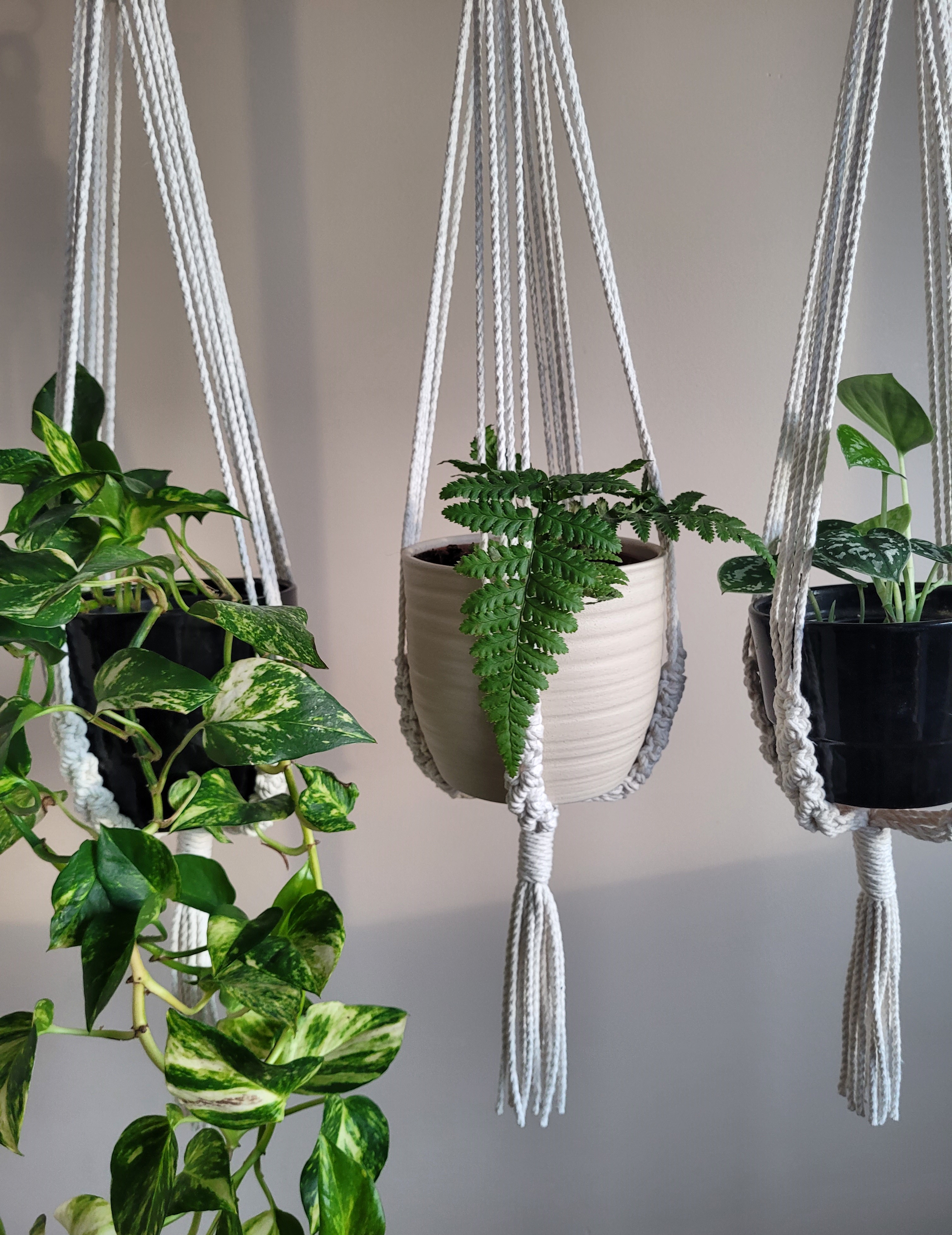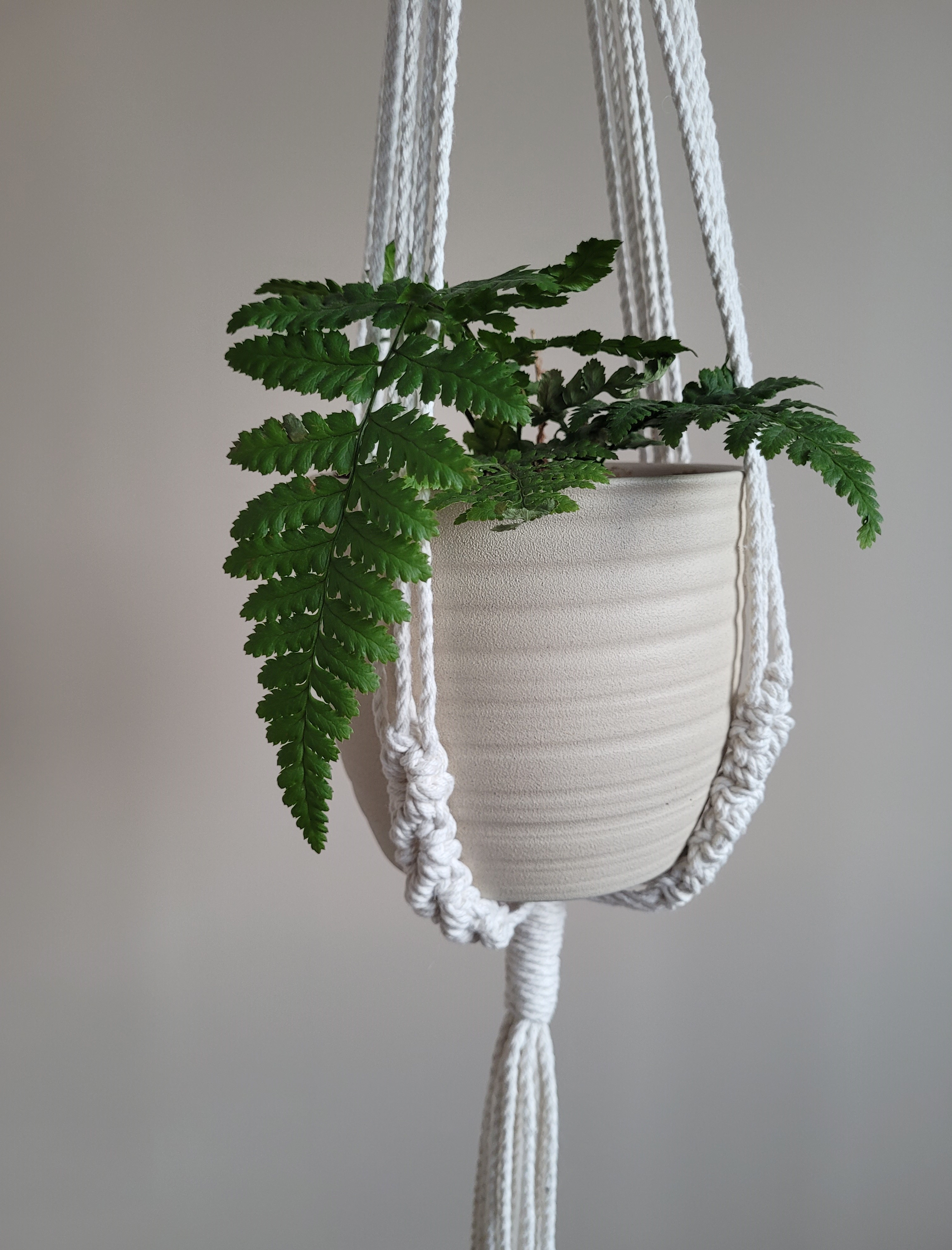 Natūralios spalvos gėlių laikiklis, pintas iš 100 proc. medvilnės siūlų.