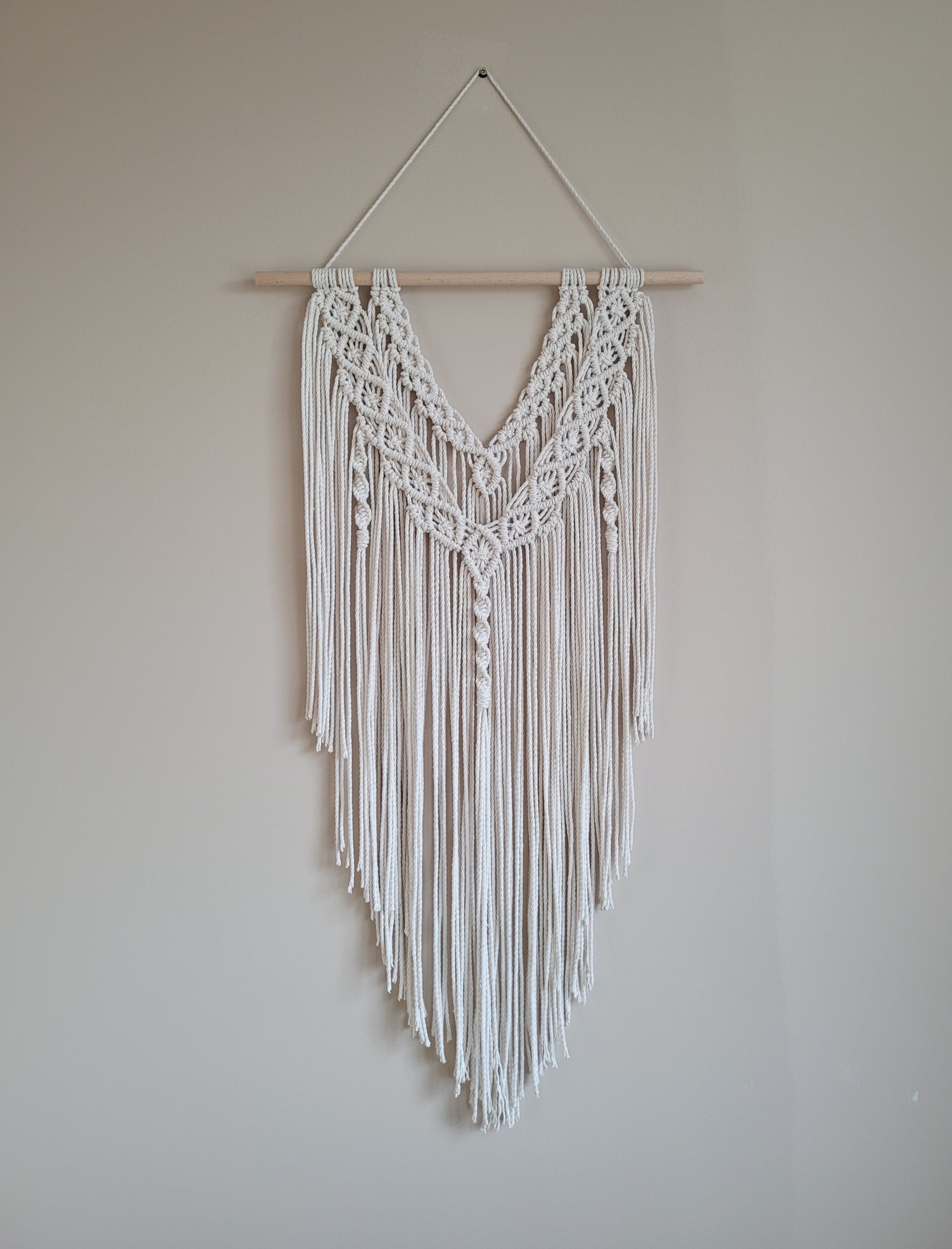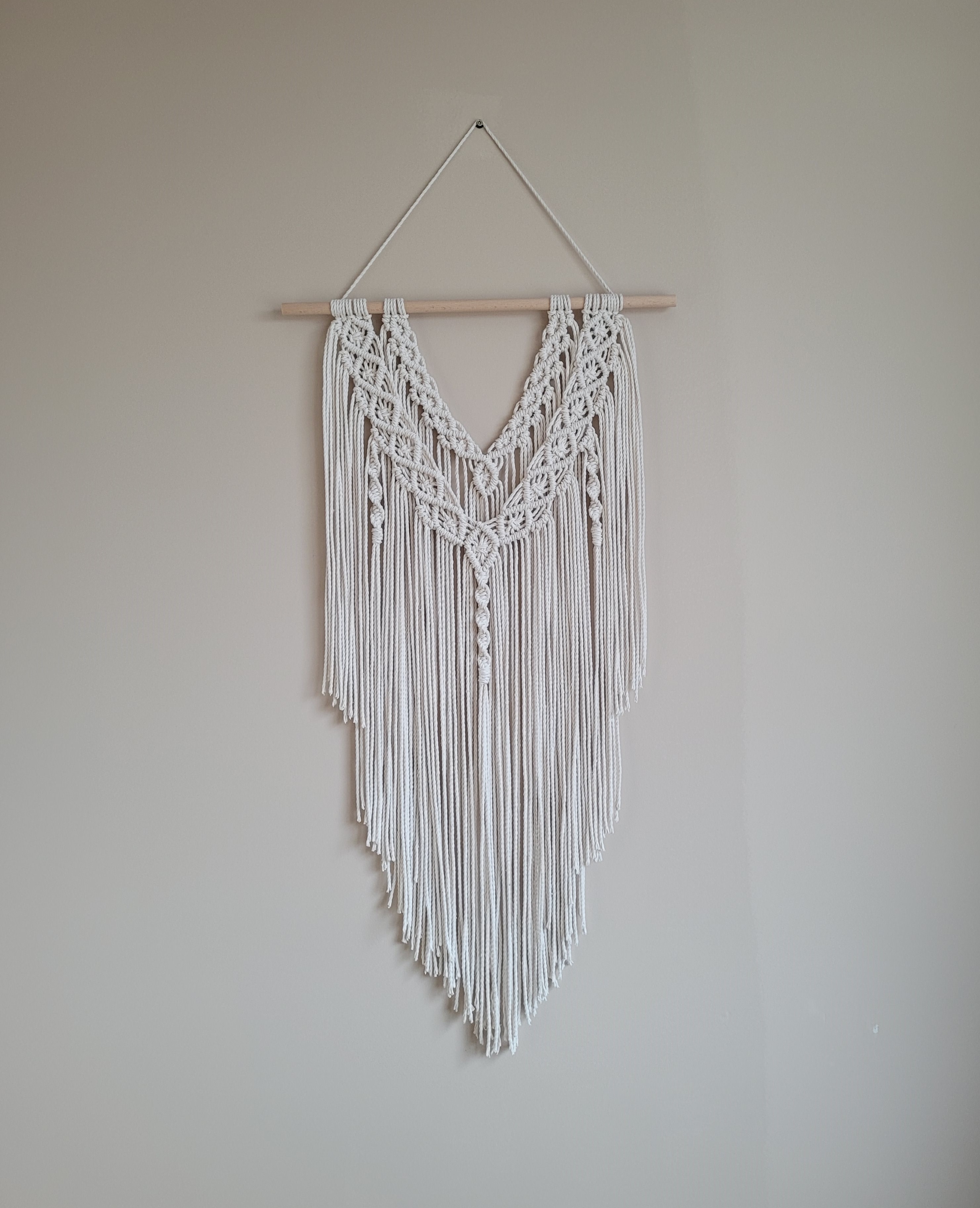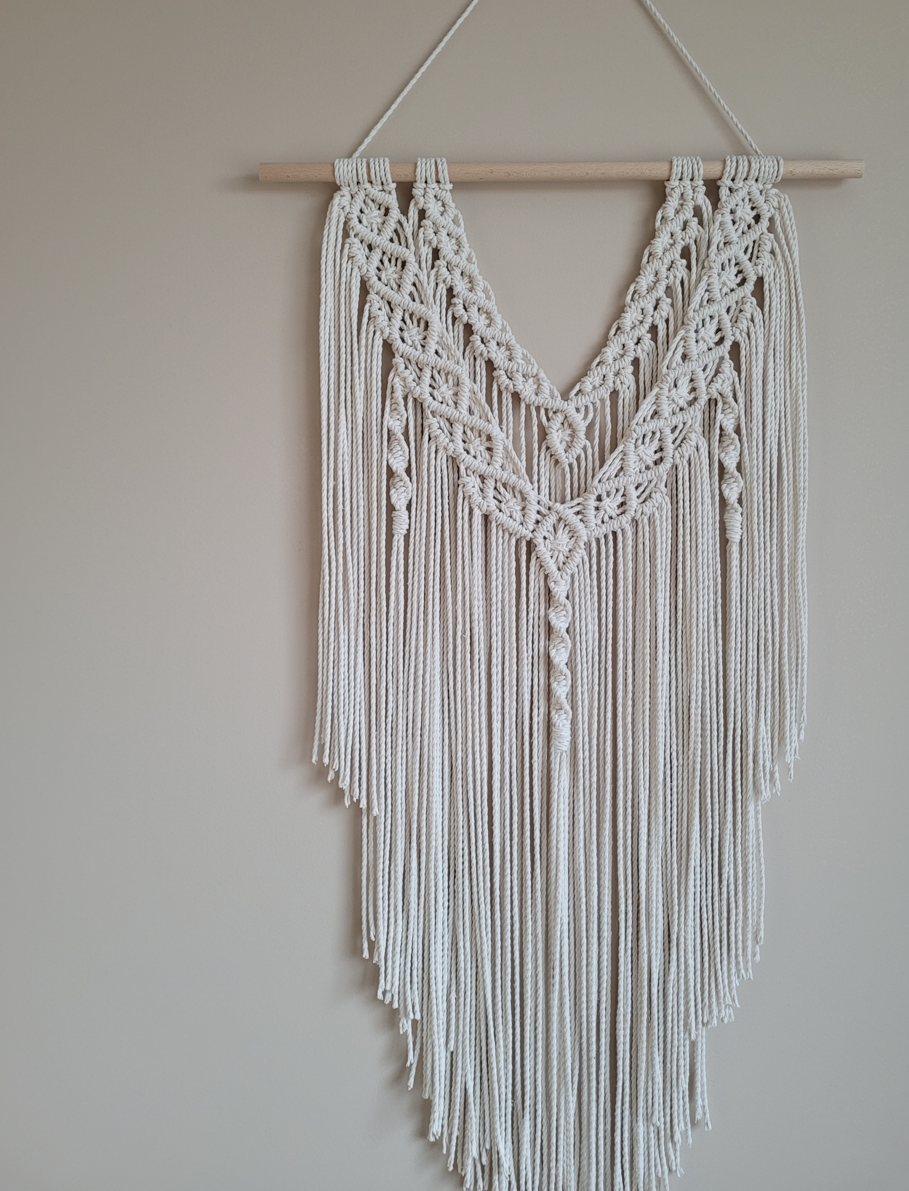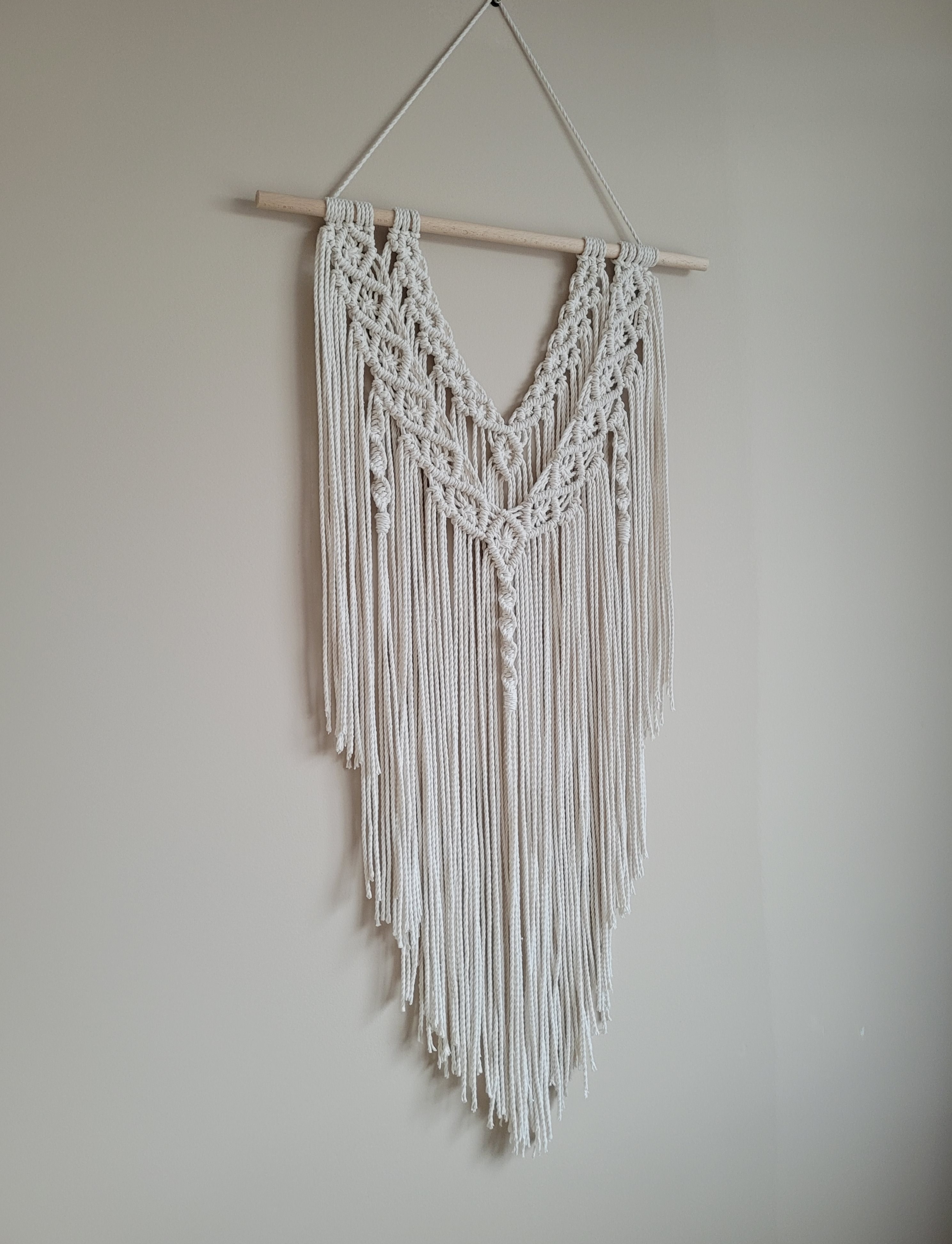 Natūralios spalvos sienos dekoracija. Kiekvienas mazgas rištas rankomis, siūlai iš 100 proc. medvilnės.